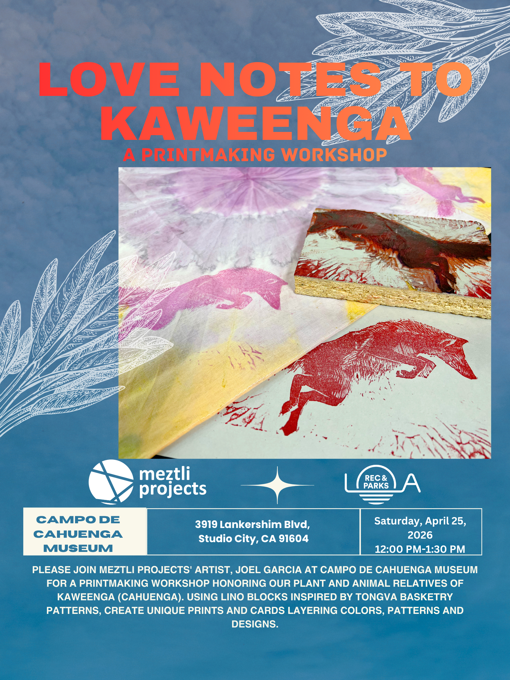 We were founded with the intent to address the severe lack of artistic opportunities for Native and Indigenous Artists as-well-as systems-impacted youth living and creating in Los Angeles County (Tovaangar). This work takes shape in several forms such as for-hire opportunities, advocating for truly equitable resources such as but not limited to funding and culturally authentic (not just relevant) programming, and training future and emerging cultural workers.